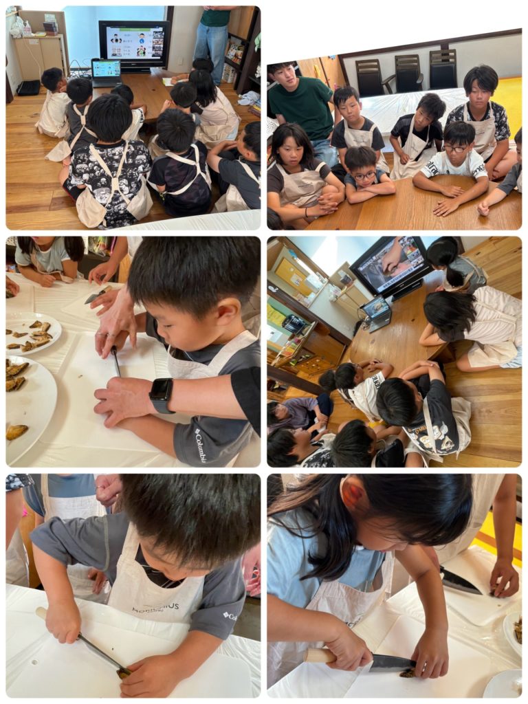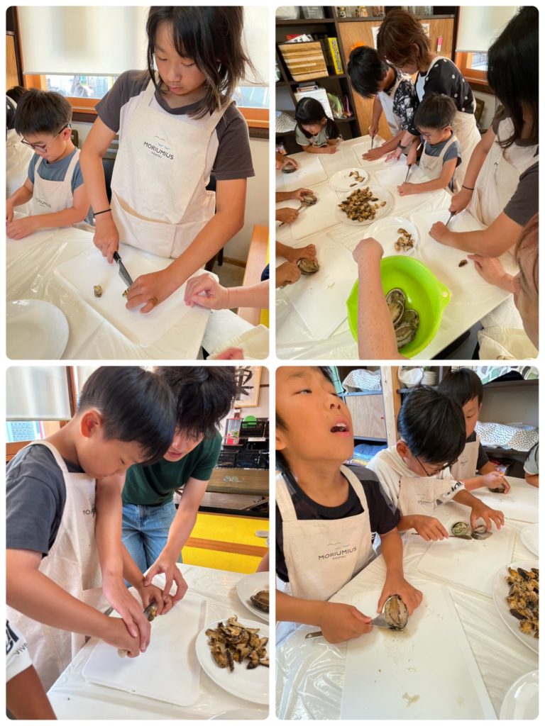 調理の時間にはホタテヘラを使ってアワビを殻から外す体験やツブ貝を切って味見をするなど五感を使っての実習となりました。